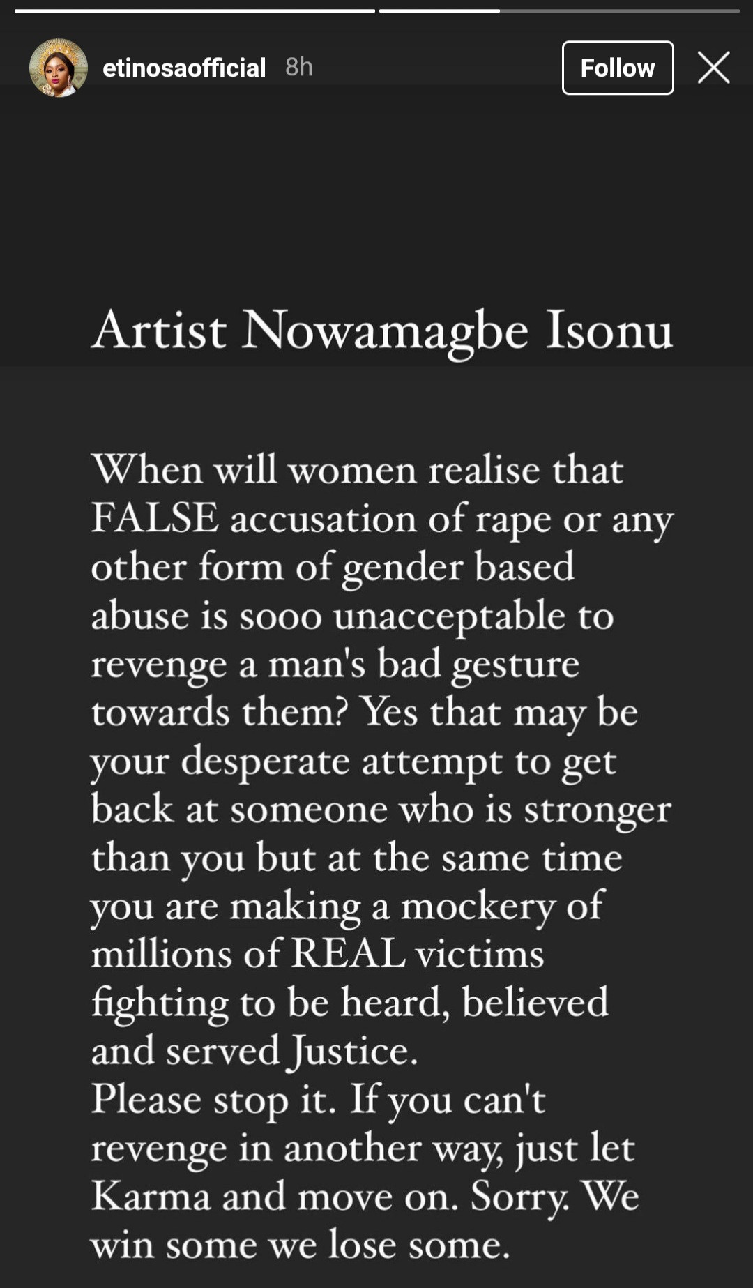 According to her, that is not the only way to get back at him and women should stop making mockery of real victims fighting to be heard, believed and served justice.