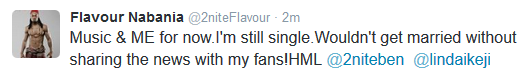 Few days back rumors were flying about the singer paying Sandra Okagbue’s dowry and the couple hooking up, but Flavour has since played down these rumors as he took to twitter to clear the air, read what he wrote below;