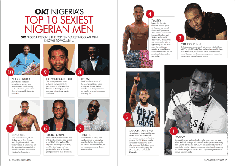 OK! Nigeria magazine, has made known their Top Ten lists of ‘Sexiest Nigerian Women’ known to man, and ‘Sexiest Nigerian Men’ known to women. And topping their lists are rapper Lynxxx and actress Genevieve Nnaji as Nigeria’s sexiest male and female.