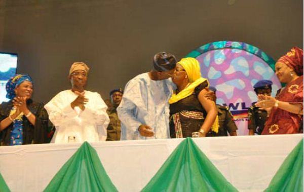 Fashola got the crowd applauding when he planted a kiss on his wife’s lips, as the Osun State governor Rauf Aregbesola and other guests looked on..