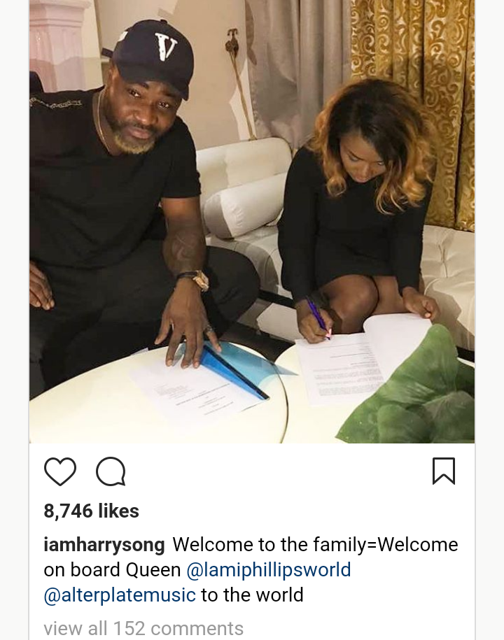 The boss of Alter Plate record label, Harrison Tare Okiri, popularly called Harrysong has signed Nigerian singer and songwriter, Lami Phillips