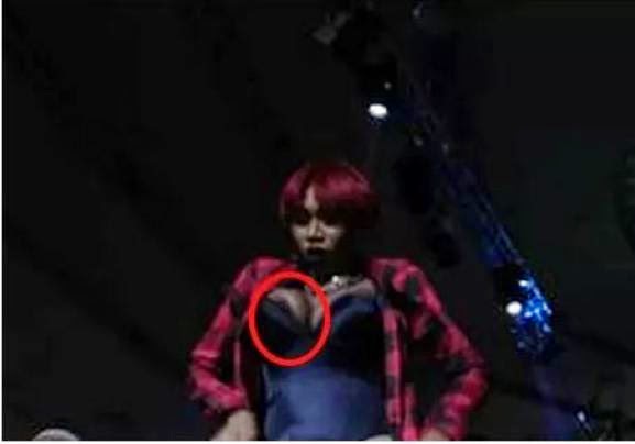 However, her boobs nearly spilled out of her one piece suit during her energetic performance…