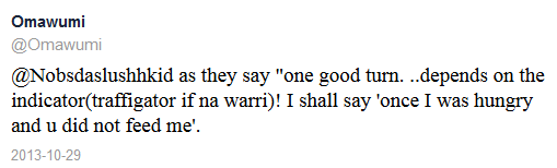 “Once I was hungry you did not feed me” Omawumi To 360nobs boss Posted by: b3rrilyn in Celebrity News Oct 30, 2013 Wonder what could be the problem between them, see her tweet below; Noble Igwe Omawunmi 2013-10-30 b3rrilyn