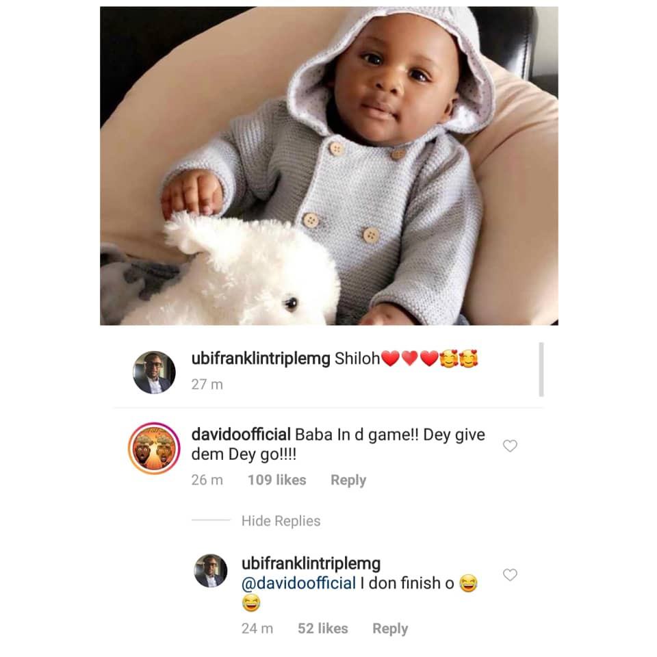 On Instagram, in a banter exchange with Davido, the music executive flaunted a new picture of his son, Shiloh and responded when Davido asked him to continue “giving” the ladies.