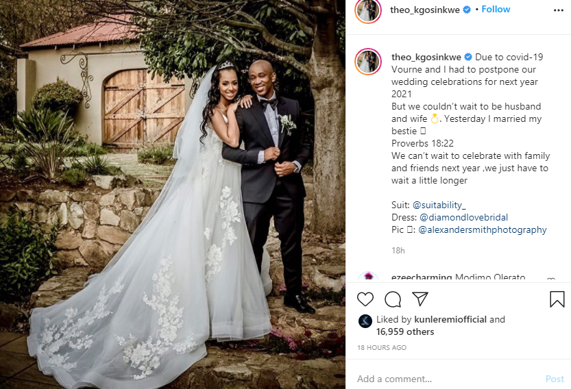 Theo had this to say, “Due to covid-19 Vourne and I had to postpone our wedding celebrations for next year 2021