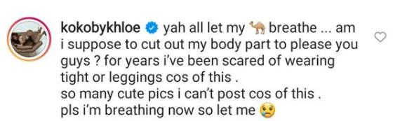 Koko added that she has always been scared to wear tights or leggings because of the imprint her cameltoe will leave, but not anymore.