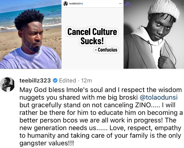 According to him, he refuses to agree with those cancelling Marlian Music signee, Zinolesky, because he would rather educate him on being a better person in life.