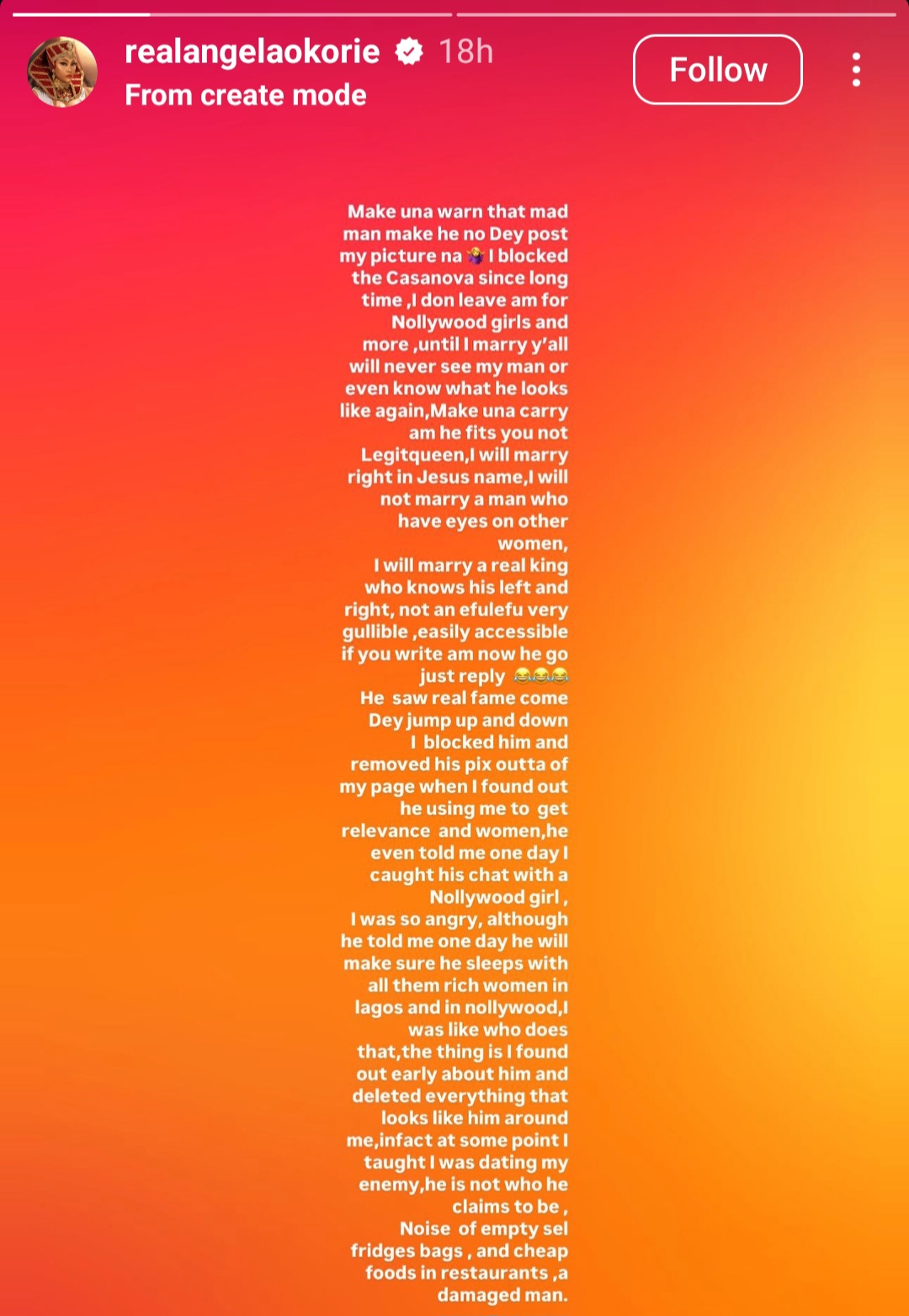 Angela added that she regrets showing him off to the world, and she has decided to never to show off any man again until after marriage.