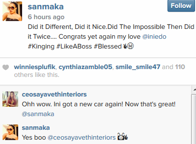 Weeks after she bought a N38million G-Wagon, looks like actress Ini Edo has bought another SUV. A brand new Range Rover. One of her close friends, Amaka Ezeh, shared the pic on her instagram page and congratulated Ini. When a follower asked her if Ini had bought another car, she replied yes.