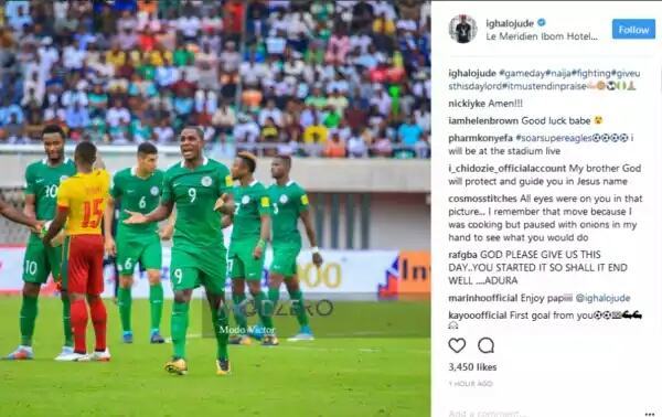Jude Ighalo ’s wife swiftly called the lady out on after noticing that she’s venting affection to her on a social media post about their match against Zambia today.
