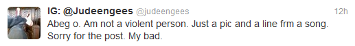Jude Okoye apologises for posting gun pics Posted by: b3rrilyn in Celebrity News Jan 8, 2014 Some days ago posted pics of his gun collection, he has apologized for posting of guns on his instagram page which infuriated some people. He’s since taken the pic down. Jude Okoye 2014-01-08 b3rrilyn