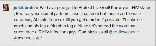 The actress signed a new contract with a condom making company. And she tweeted about the eradication of Hiv/Aids in the world. See her tweet below;
