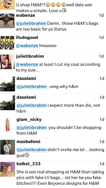 Juliet Ibrahim went shopping at H&M in Amsterdam and posted this photo on her Instagram page but some of her fans didn’t find it flattering as they mocked her..