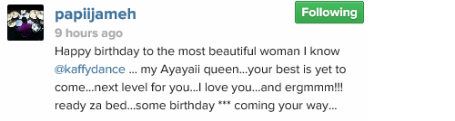 Kaffy’s husband sends her raunchy message as she turns a year older
