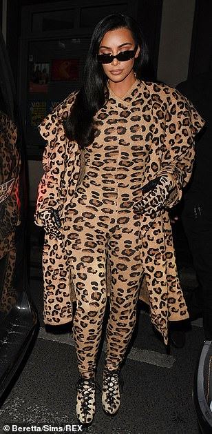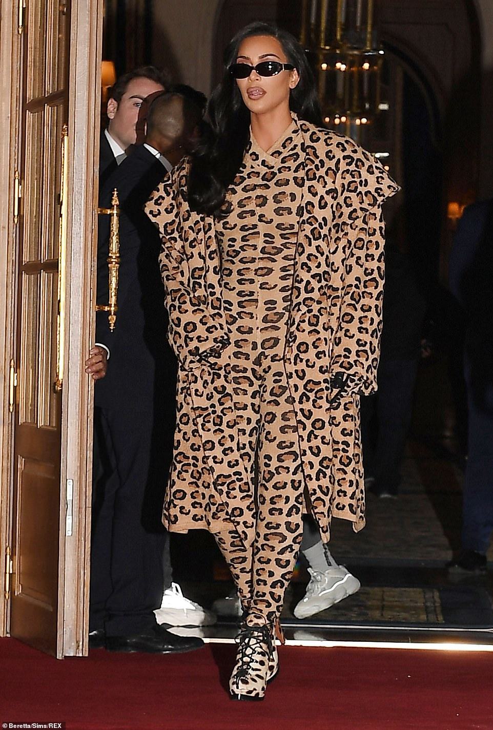 The pictures showed Kim Kardashian in a leopard-styled outfit and still found her way to make it look good.