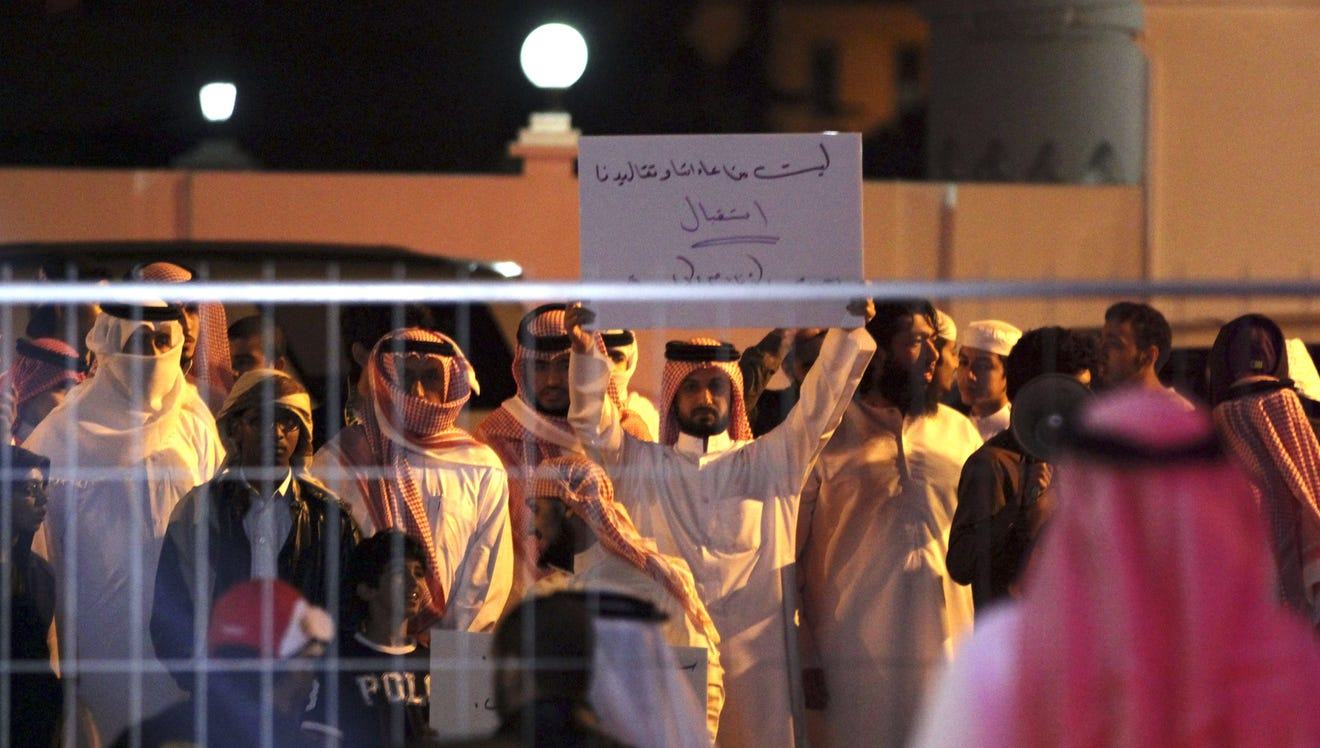 Protesters were seen chanting ‘God is Great’ near the shopping complex in Riffa, about 12 miles south of the capital Manama.