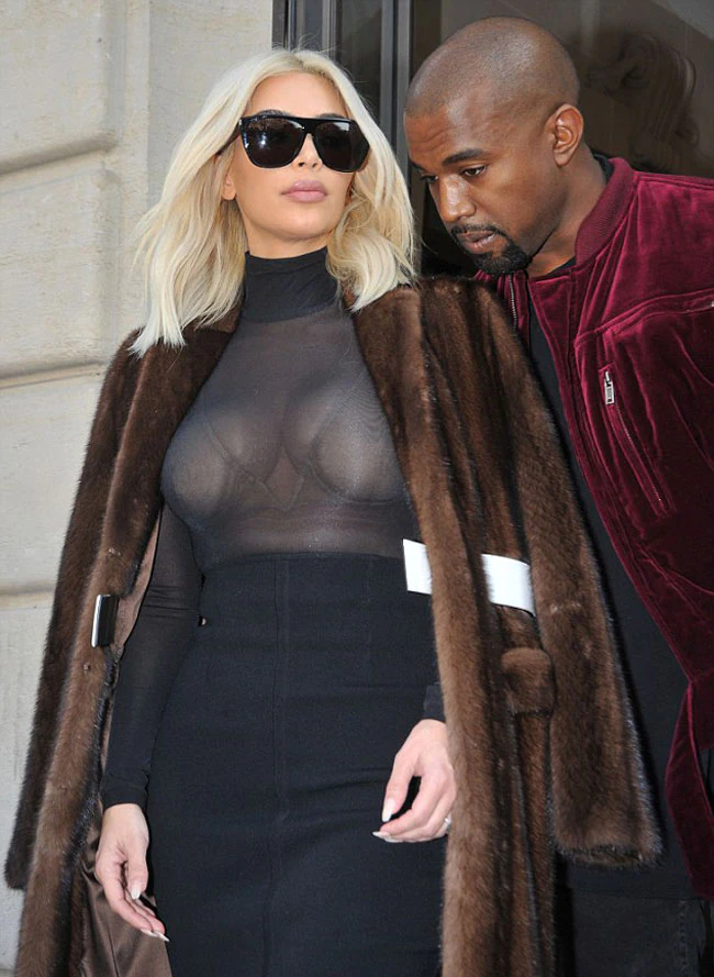 Her nude bra gave the impression she had nothing on.. Her fashion choices in Paris are not popular with fans ..But guess Kanye is cool with it..