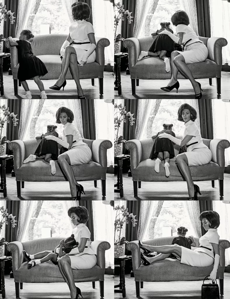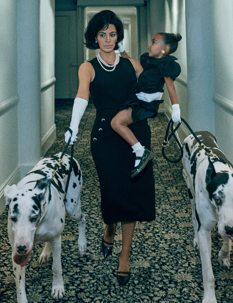 Kim Kardashian and North West would like as the first family, here’s your chance. The reality TV star and her 4-year-old daughter are featured on the cover of Interview magazine’s September issue. In the spread (which also marks North’s first interview), Kim channels the late Jackie Kennedy in a retro bob and a series of ’60s-inspired outfits, while North looks adorable in a black dress and little white gloves.