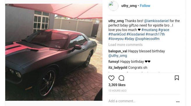 Thanks bro! @iamkissdaniel for the perfect bday gift,no need for epistle bro ..I love you too much ❤ #mustang #grace#thankGod #Kissdaniel #march17th#iloveyou