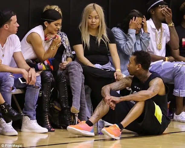 Kylie Jenner & Tyga loved up at basketball game | Photos Posted by: b3rrilyn in Celebrity News May 31, 2015 The 17 year old reality star and her 25 year old rapper boyfriend only had eyes for each other at a celebrity Basketball game in LA last night. Kylie Jenner Tyga 2015-05-31 b3rrilyn