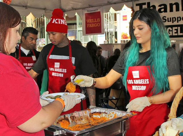 Kylie and rumoured boo Tyga spent Thanksgiving by catering for the homeless together… They look so in love but still claim to be just friends