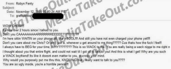 We received an email that Rihanna sent to Chris Brown nearly when the two were dating. The email shows just how needy Rihanna was in their relationship. We removed the “from” field, but trus us this is 100% confirmed to have come from Rihanna. How did we get it, you ask? Well Chris sent it to his homies – to show them how needy Rihanna is. And explain how he’s never getting back with her. So all you Chrianna fans.. you can forget it!!