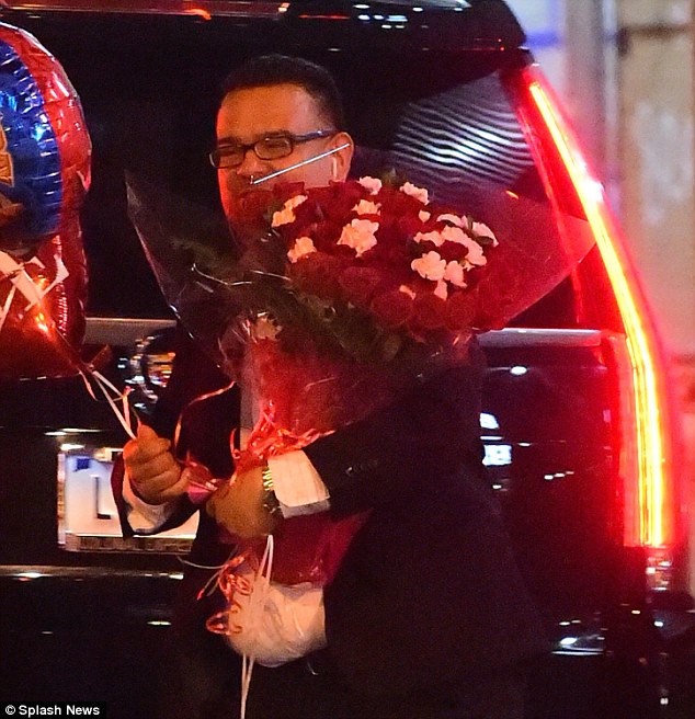 A limo arrived to drop off the stunning bouquet of nearly 50 roses, as well as a balloon that read: ‘I love you.’