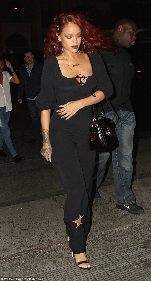 Rihanna kept covered up in a rather demure, 90s inspired look as she hit the town in New York City on Tuesday evening.