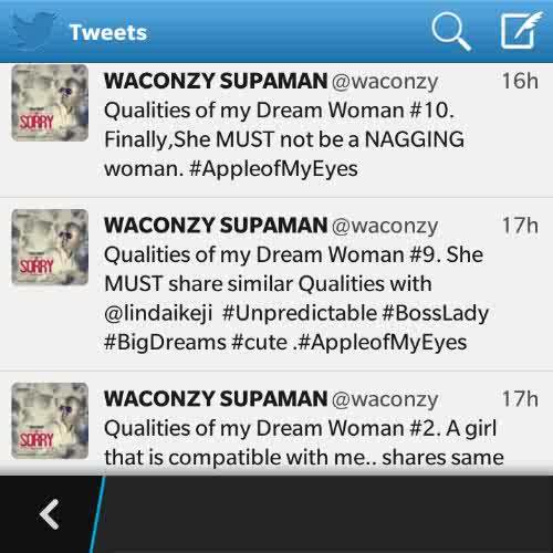 This then triggered Waconzy to tweet the qualities of his dream Woman.