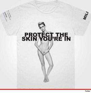 0-year-old Miley Cyrus aka Little Hannah Montana stripped down for a photo shoot, though not a spread, it was used for a Marc Jacobs t-shirt which is part of the “Protect the Skin You’re In” campaign to raise awareness for melanoma research.