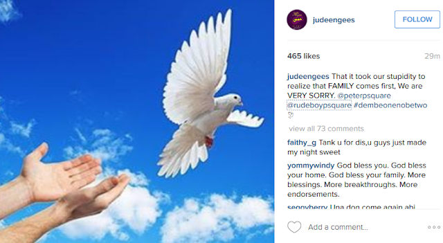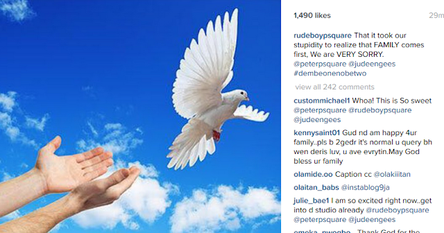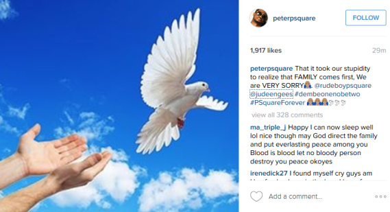 The brothers who have been battling each other for a while now, this night posted a photo of a dove on their respective instagram page with same message.
