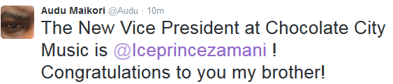Ice Prince, 28, real name Panshak Zamani and M.I, 33, real name Jude Abaga were announced this evening by former head of Chocolate City Audu Maikori as the vice president and chief executive officer respectively of the record label.