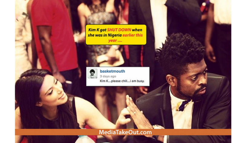 A few months back, Kim was in Nigeria for an event. She tried to shake hands with a popular Nigerian comedian named BASKETMOUTH.. and dude SWERVED!!!