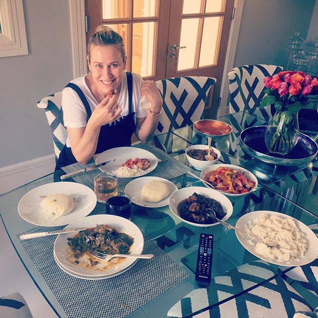 Olga Diyachenko eating Pounded yam