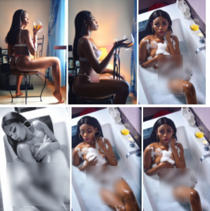Ufomba Onyinyechi, a contestant of the ‘Miss ambassador for peace 2017’ edition representing Niger State, in a bid to put the spotlight on herself as the pageant contest approaches, has gone nude in a bathtub.