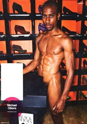 26 year old Michael Obiora is a UK based Nigerian-born actor and writer. He’s had television roles in UK shows like My Family, Judge John Deed, Misfits, and even Doctor Who. He wrote his first book Black Shoes and posed nude to promote it.