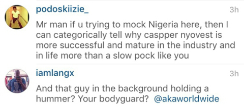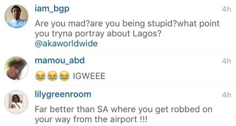 AKA who arrived Nigeria recently for an event was blasted by angry Nigerians on Instagram after he posted the photo as they claimed the South African rapper is mocking Nigeria.
