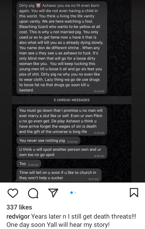 Her words, “Years later and I still get death threats. One day Yall will hear my story.”