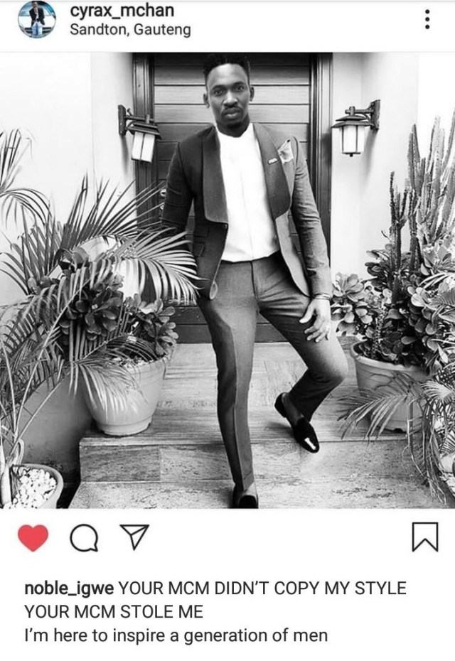 Noble said, “YOUR MCM DIDN’T COPY MY STYLE. YOUR MCM STOLE ME I’m here to inspire a generation of men.”