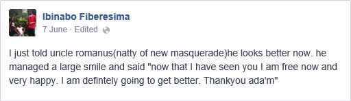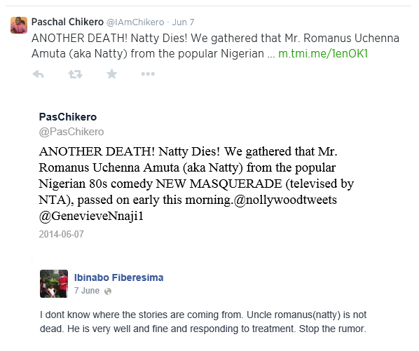Earlier on during the weekend, there were reports that veteran actor Romanus Amuta was dead, that he passed on early morning on Saturday. Same day the story broke, AGN president, Ibinabo Fiberesima had visited the veteran actor at home and she says he’s very fine and well and responding to treatment.