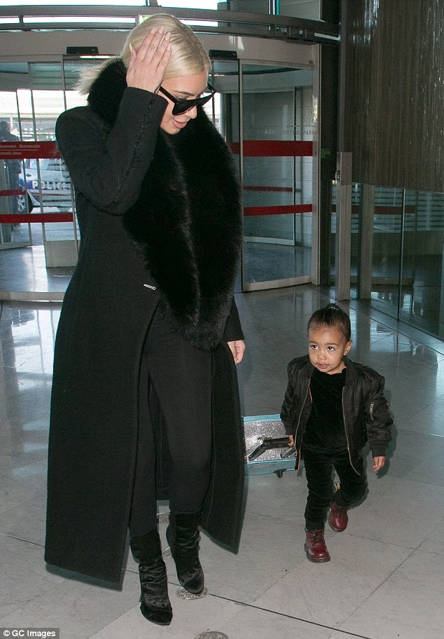 North West looked like a mini-me movie star as she jetted out of Paris with her mum Kim K today. North pulled her Frozen (Disney movie) suitcase as she walked with her mum through the Charles de Gaulle airport terminal to catch their flight.