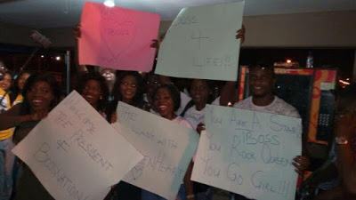 Tboss landed in Lagos this evening. Awaiting her return were her fans who trolled to the airport to welcome their boss lady.