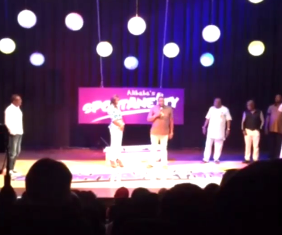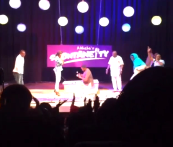 The popular comedian proposed to his girlfriend, Olajumoke on stage at a recording of Ali Baba’s Spontaneity TV show.