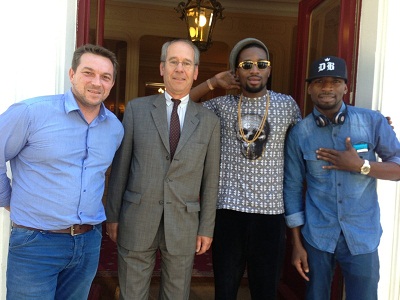 Marketing Manager, Moet Hennesy, David Hourdry, Hennessy Ambassador, Cyrille Gautier-Auriol, Hennessy Artistry 2013 Headliner, Dbanj and brother, Kay Switch at the Chateau De Bagnolet, the home of Hennessy in Cognac, France today, September 4, 2013.
