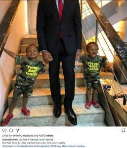 Nigerian Billionaire Businessman, Tony Elumelu who recently hosted a bi-partisan delegation of U.S Congressional members to a US-Nigera business luncheon, took to his Instagram page to share a photo of him and his twin sons.