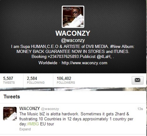 “The Music bIZ is alotta hardwork. Sometimes it gets 2hard & frustrating. 10 Countries in 12 days. approximately 1 country per day. #MBG EU tour” Waconzy quotes via his twitter handle.
