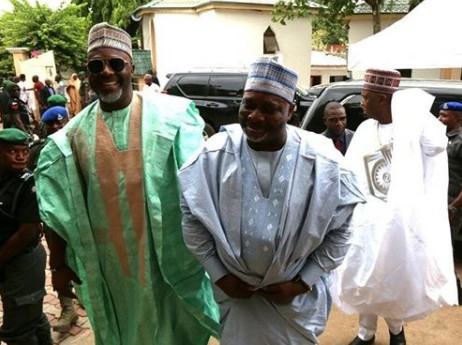 Senator Dino Melaye who has been declared wanted by the Kogi state police command, arrived the state for the 7-day prayers for deceased House of Representatives member, Umar Buba Jibrin.