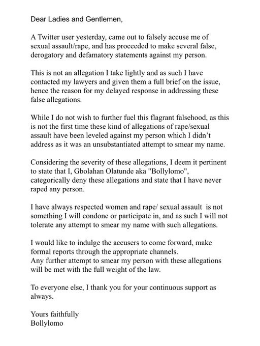 According to him, rape is not an allegation he would take lightly but he would not be giving the falsehood any more attention anytime soon.
