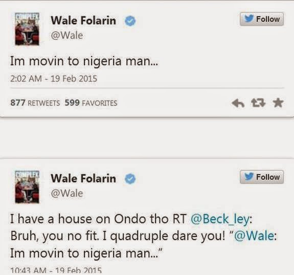 US rapper Wale announced on his twitter that he’s moving to Nigeria. His parents are Nigerians but he was born and brought up in the US. Good idea or not