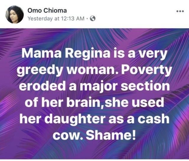 A Nigerian Feminist recently blasted Regina Daniels’ mum for playing a terrible role in her Nollywood actresses’s marriage to a man who is three times older than her.